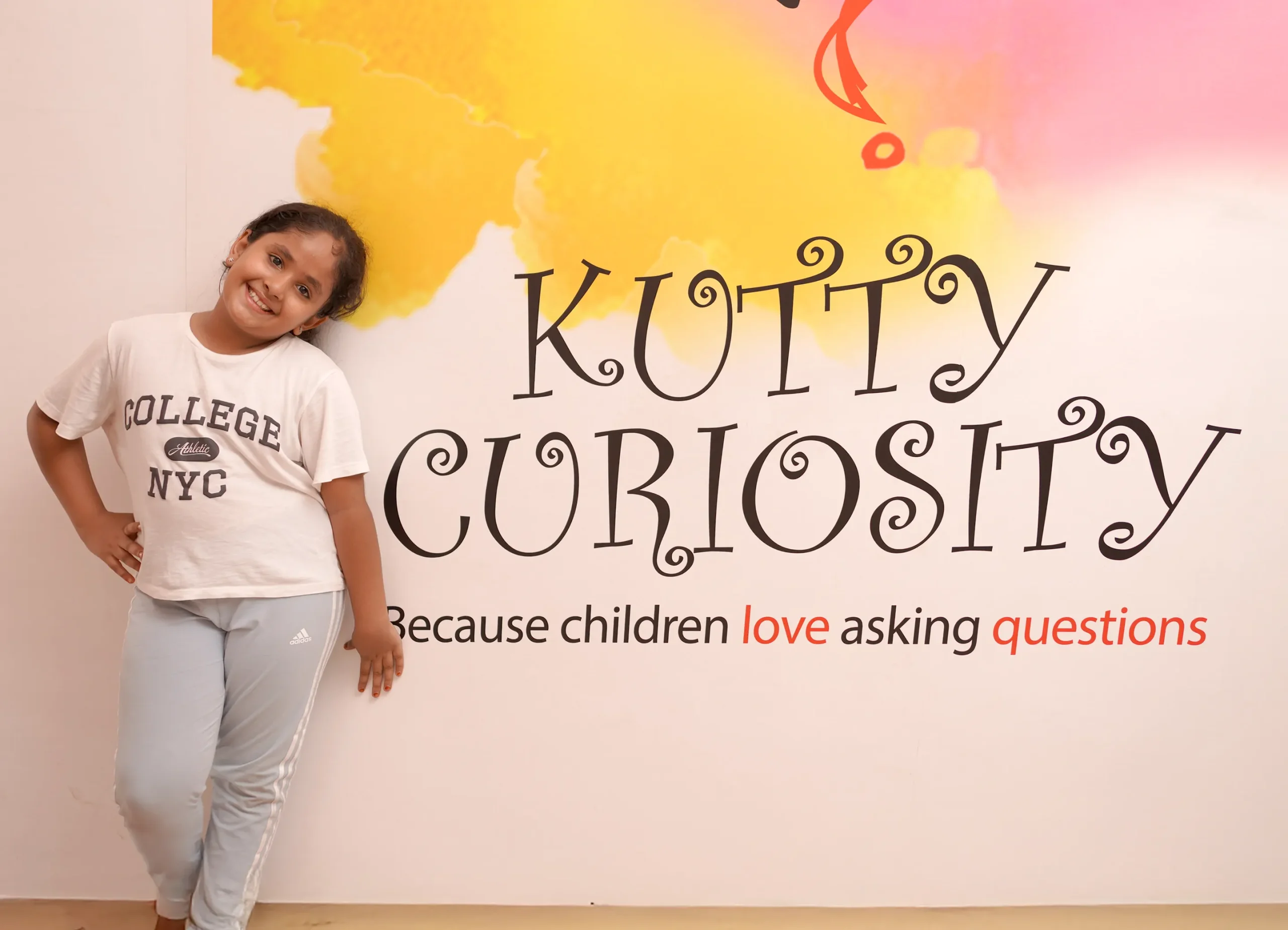 One day, Chandini told her five-year-old daughter Vaani to sketch what sprang to her mind when thinking about Kutty Curiosity. Vaani, being innately inquisitive, asked, "Mama, how do I draw something that asks the question 'why'?" Chandini suggested that she draw a question mark, but Vaani got creative. She drew a large question mark and a heart next to it. In the heart, she placed two stick figures. When her mother asked about the drawing, the little girl simply said, “Because children love asking questions.” And that was it—the perfect name, logo and tagline for a space where curiosity leads the way.
